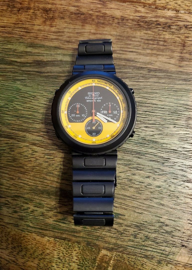 Brad. Giugiaro (who only designed 7A28's) may have influenced the design, but it's most definitely Seiko in house. That isn't the main issue with this watch I'm afraid. As soon as I saw the 5 additional photos that the seller had uploaded I got that horrible feeling of Déjà Vu. This particular 7A38-7140, case-back serial number 560452, has featured in this thread a few times over the last couple of years. The story begins on page 4 of this thread, where I wrote: Originally posted by myself on September 15, 2017 at 10:13 AM: The seller (who is an ex-member of this forum) listed this black chrome coated 7A38-7140 yesterday evening, as a 7-day auction with an opening bid price of 1 Euro and no reserve. Studying his photos, I strongly suspect the watch case and bracelet have been given a blow-over respray. They just look too good to be true for a used example. Especially when compared to the ends of the pushers and crown, in the two side-on view photos, which show considerably more evidence of rubbing wear. There are also a couple of minor dings on the bezel, but strangely no sign of the base metal showing through. The surface finish of the bracelet clasp looks typical of the results that can be achieved using an aerosol can. Notice also how the ends of some of the bracelet link sections don't align properly - indicating lateral wear or stretch in the joining link sections - another tell-tale sign that the bracelet is more worn than its fresh coat of paint belies. It subsequently passed through a couple of owners' hands before selling for 385 Euros in June 2018, to profiteering UK eBay re-seller ancutza_seven2009, who turned around and listed it with a ludicrously marked-up 'pie-in-the-sky' Buy-it-Now price of £850 !! (My post dated July 3, 2018 at 7:10 AM refers). He then re-listed it ad nauseam, for almost a year, without reducing his price. As you can see from my post higher up this page, he eventually managed to sell it in June this year for a surprisingly high offer of £636 (if WatchCount.com is to be believed). Presumably the buyer was the US eBay seller you've just bought it from. I'd naturally be interested to learn how much the lowball offer you made, accepted by the current seller, was for, because much to my annoyance, it isn't possible to extract the 'true selling price' figure from eBay in these auction / offer situations.