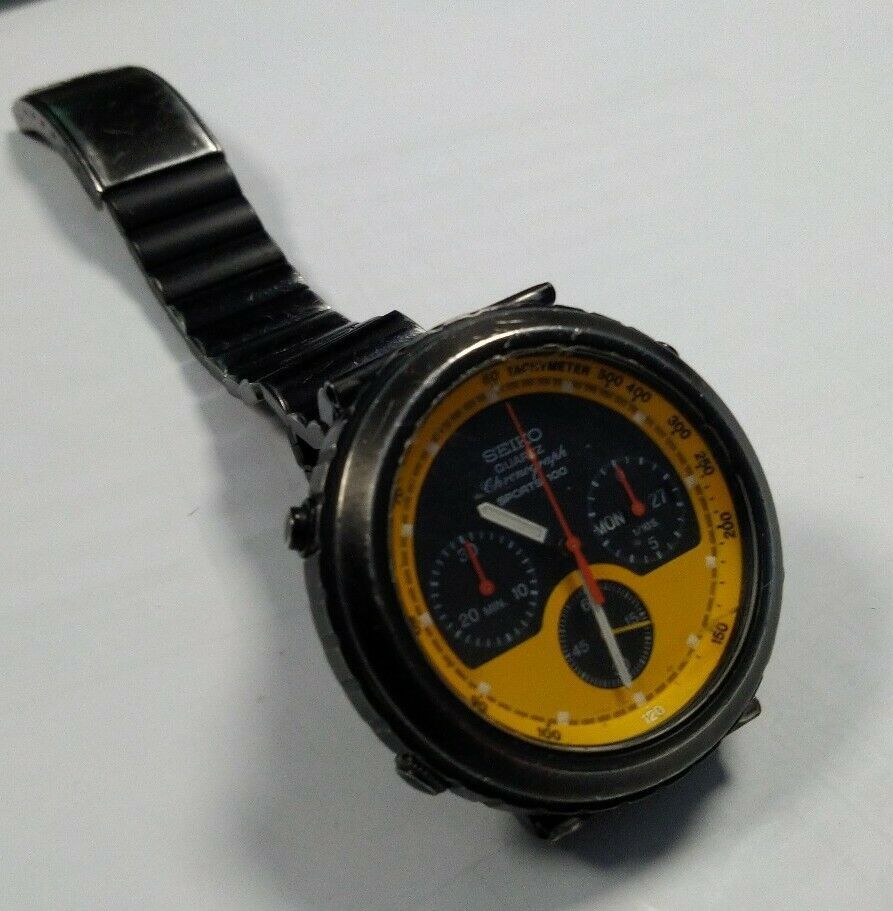 The second suffers from even worse levels of rubbing wear to the black chrome plating and is fitted with the wrong case-back off a stainless 7A28-7020. http://www.ebay.co.uk/itm/124187362414