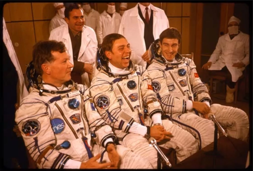 In this alternate pre-launch photo, Jean-Loup Chrétien's left arm is obscured, even if he was(n't) wearing a Yema Spationaute III. Mission commander Aleksandr Volkov (centre) is wearing a stainless LCD digital, possibly a Poljot or Sekonda (copy of a Seiko). See: http://www.netgrafik.ch/elektronika.htm and scroll down the page: Also included in this first wave of digital enthusiasm was Integral Elektronika Factory in Minsk. Their brand name was Elektronika-5 and their first model, 5.202 (module calibre 30350) was a 6-digit LCD with day and date (correcting for short and long months). It remained in production for many years alongside more modern models, including the multi-function 5.207. In the post Soviet era, Integral continued production of the 2nd generation Elektronika-5 models then current, but with new names (e.g. 55B). These are the basis for the current Elektronika and Kamerton ranges. Soviet Integral digitals were sold with the following brand names: Elektronika-5, Elektronika and Sekonda.