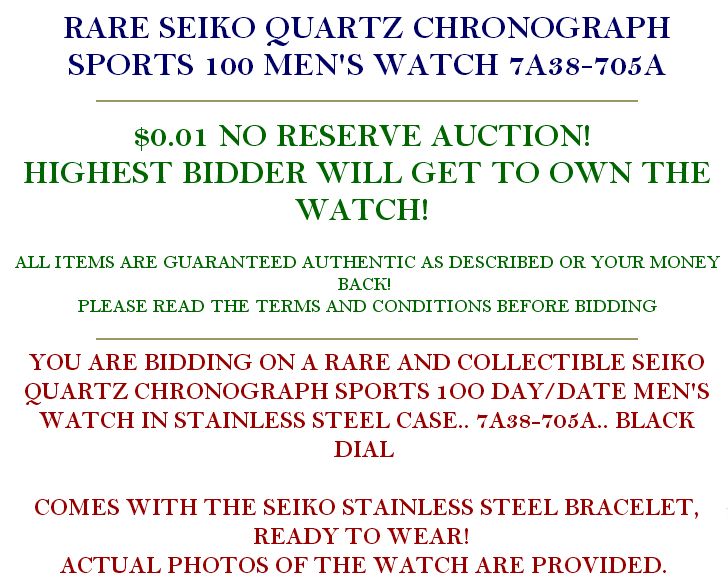 Meanwhile, I think I've finally found my own 'cheap beater' 7A38-705A. It was certainly cheap enough, compared to other recent examples, though it may actually turn out to be a half decent example. Late on Monday night, just before I hit the sack, I decided to run a quick worldwide eBay search on Seiko 7A38 - and found this. http://www.ebay.co.uk/itm/161978910089