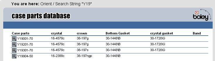 Most of the information included in the spreadsheet has been gained by my actually owning the watches. Some of it was verified when I discovered the Boley.de's case parts database. IIRC, at the time I found this table, back in May 2012 .... http://www.boley.de/en/case-parts/orient?search=y19