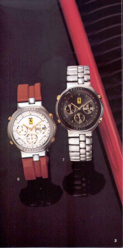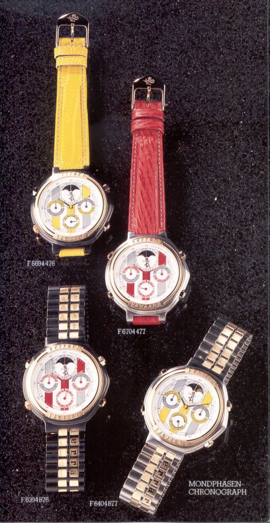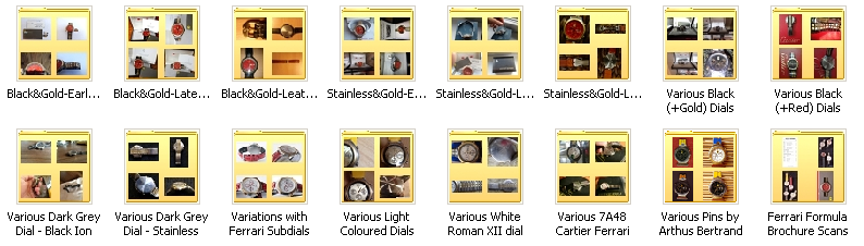 And to add to the permutations of these watches, mine is not even shown here. Basically mine is a F6094801 Testarossa model but has all black hands and smaller sub dial hands (as you stated in the ferrari cartier movment swap thread) and am the original owner since new so is not a secondhand franken ferrari either. | |