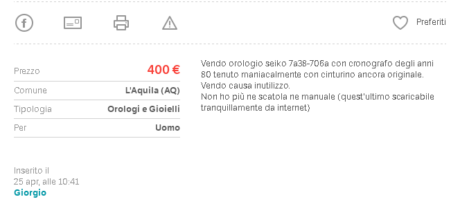 The original listing for item # 110781791508 on eBay Italy has long since dropped off history, but here's the basic information: Orologio uomo marcato Seiko quartz Chronograph