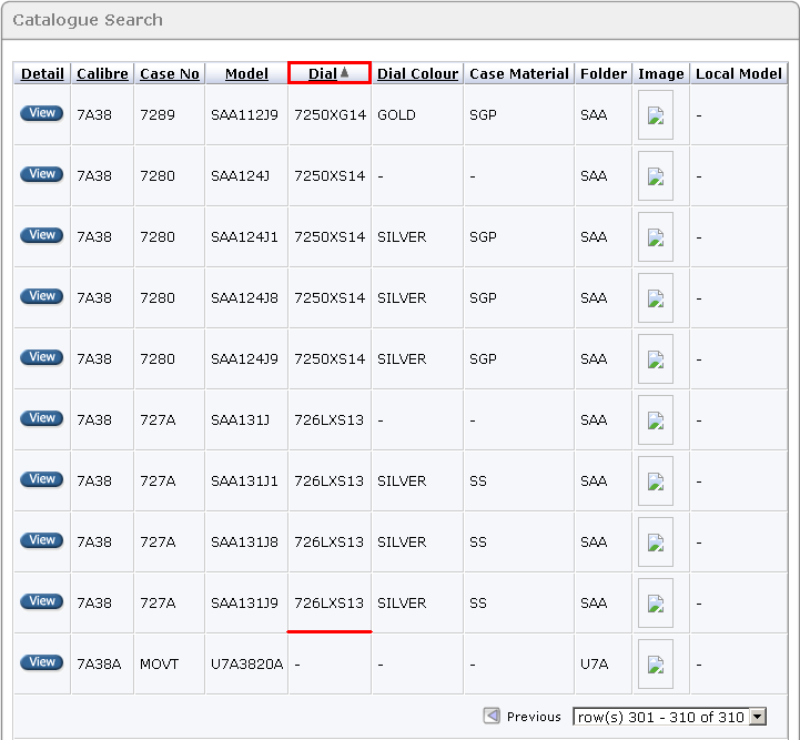 However, if you run a search on 7A38 on Seiko Oz's database, and then sort the 310 lines on (Descending) dial numbers:
