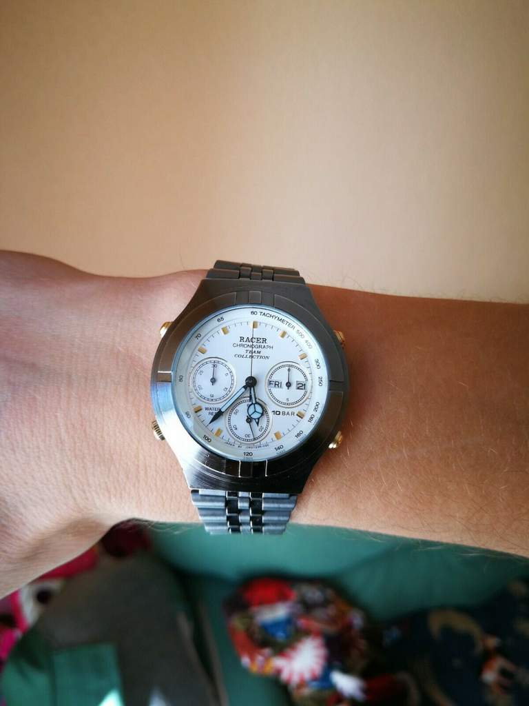 Rare Racer Team Collection Working conditions Not genuine strap Scratches are present on the cristal, case and back Any doubts just ask before buying Thank you. I must admit that I hastily rushed in there and hit the Buy-it-Now button, rather than making an offer, waiting and risk losing it to another potential buyer. Oddly, later on, when I checked WatchCount.com, it showed that it had theoretically been listed since 18th November. I couldn't believe that I'd missed spotting it before (or my saved search had failed to find it) for nearly 3 weeks.