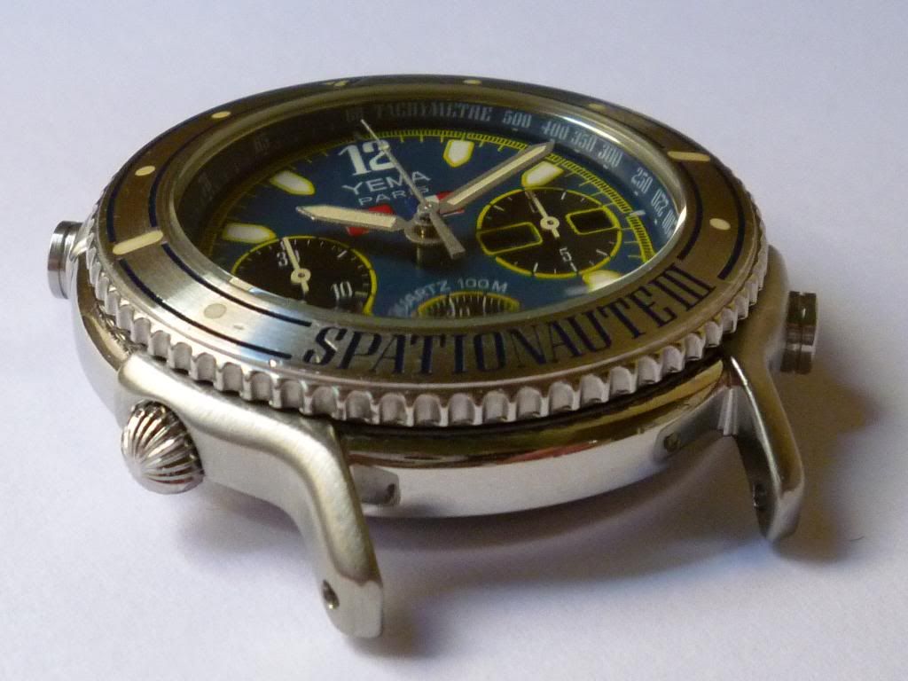 For the benefit of anybody who may also be looking for a replacement crystal for a (43mm diameter) Yema Spationaute III (or for that matter, a Yema N8 Flygraf) I suppose I ought to report on my results with that Cousins cheap substitute crystal. A little later than I'd originally planned, I finally finished the restoration that other ongoing project 'Mission Flags' dial Yema Spationaute III this morning.