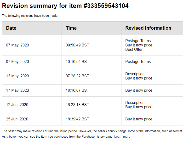 I've seen a few worse examples of blatant profiteering by eBay sellers, since then, particularly concerning this sought-after obsolete crystal, Seiko p/n 310W64GN00. In the last week of March 2020, a US eBay seller onlyjbennet, who had evidently purchased inventory from a closed watch material house, listed 5 of them, initially with a borderline extortionate Buy-it-Now price of $85 each !! I didn't add it to my eBay watching page at the time, because I'd already exceeded the maximum number of 300 items. I thought I'd taken a screen print, but I if I did, I can't find it now. ![]() I was prompted to revisit the listing yesterday afternoon, to find that the US eBay seller had since dramatically reduced the Buy-it-Now price, to a more reasonable $30. The postage cost had also been reduced to only $13. This is Genuine NOS Seiko Crystal 310W64GN00 for cases: 7A28-7040, 7A28-7049, 7A38-7070 and 7A38-7080. These have been discontinued for several years and are very difficult to find. These came from a closed watch material supply house. Please take a look at the photos and ask any questions you may have. Shipped with USPS First Class Package. Checking the item revision history, over the last 3 months, the US eBay seller had reduced his original 'pie-in-the-sky' Buy-it-Now price of $85 a total of 5 times, down to the current $30. ![]() The eBay Purchase History shows that one punter had caved in and bought two for $75 apiece in the first week of May. Congratulations to the two other canny buyers who sat on their hands and bought the last two yesterday - only paying $30 each. There's a moral there. ![]() The listing ended late yesterday evening, when all 5 had sold: ![]() | |
