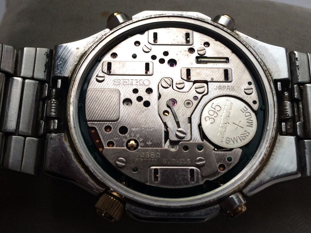 Here's a classic example of a 7A38 with the displaced centre seconds finger tension spring problem listed today by a UK eBay seller: http://www.ebay.co.uk/itm/331044658813 VINTAGE GENTS SEIKO 7A38-7289 CHRONOGRAPH DAY DATE QUARTZ WRIST WATCH HEAD ONLY