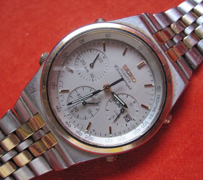 Seen it on a few 7A28's too recently. This (mis-titled) listing for a 7A28-7049, fitted with an non-original replacement bracelet, which appeared overnight made me chuckle. http://www.ebay.co.uk/itm/121384571894 THERE IS NOT A FULLY FUNCTIONAL SEIKO WORKING MOVEMENT INSIDE THIS CASE. "IT DOES NOT RUN PROPERLY," I RECEIVED THIS WATCH AS PARTIAL PAYMENT ON A PURCHASE... THE CHRONOGRAPH DIAL FUNCTION SEEMS TO WORK (NOT SURE), BUT THE TIME FUNCTION WITH SECOND HAND IS NOT MOVING... NO GUARANTY SELLING AS IS...... SELLING FOR PARTS OR REPAIR ONLY... NO RETURNS!! If you're wondering about the slightly odd description, it's because the US eBay seller gmc-jr is more used to dealing with salesman's sample cases. In fact, he's knocked out half a dozen 7A38 sample cases in the last month or so. He's obviously used / re-edited one of those previous listings as a template, hence the first sentence.