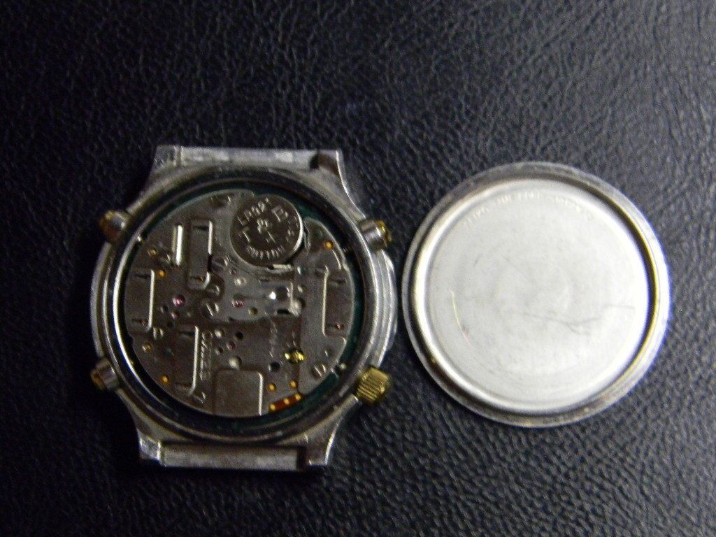 From the seller's description: Bei mir dreht sich nur der Zeiger bei 3 Uhr nachdem man die Batterie einsetzt und auf den Knopf drückt. Which roughly translates as: For me only the pointer at 3 o'clock turns after inserting the battery and pressing the button. Not exactly a surprise, with the 'brake' firmly applied to the centre seconds sweep hand. | |