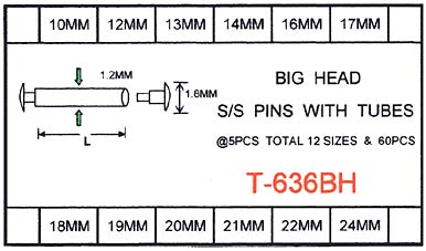 Big Head Rivet Pins with Tubes Assortment T-636BH| |